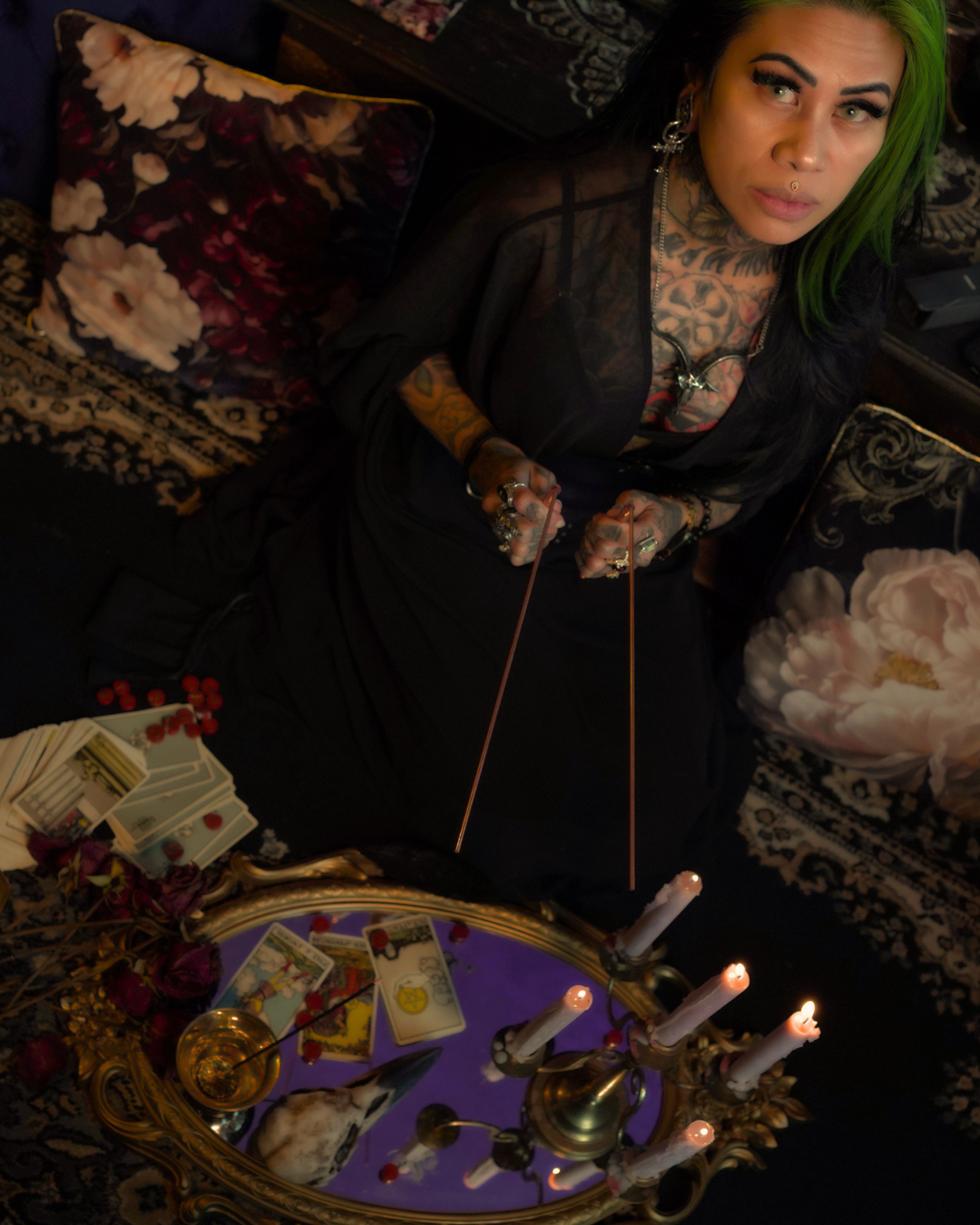 As a reader of nine years, Frankie is dedicated to creating space for their clients, offering practical methods of moving forward from obstacles that may appear and utilizing their knowledge of the tarot to assist you through a variety of matters. Frankie often ties in practical advice, supportive herbal allies, and somatic work in each reading.